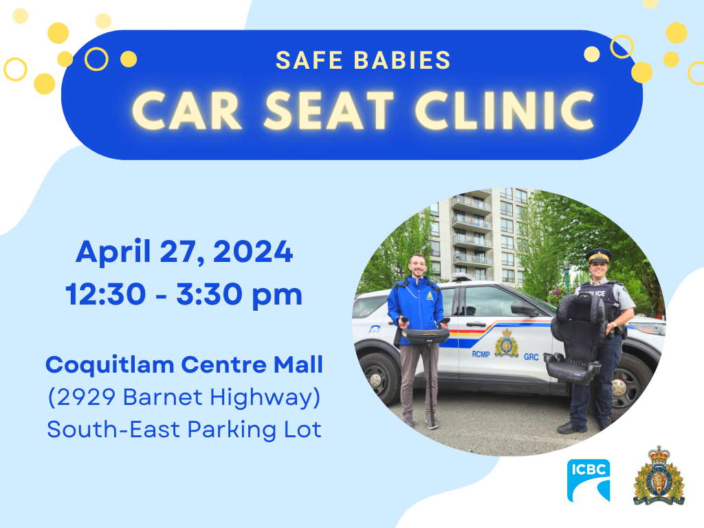 Coquitlam RCMP is teaming up with the Insurance Corporation of British Columbia (ICBC) on Saturday, April 27, 2024 to educate the public on child passenger safety.