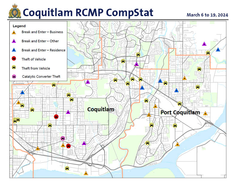 The Coquitlam RCMP urges area residents to call 604-945-1550 to report anything suspicious and to call 9-1-1 to report crime in progress. The information you provide to us, no matter how minor it seems to be, is very valuable and we need your help to keep our community safe. Visit our website for information on joining Coquitlam RCMP's Block Watch.