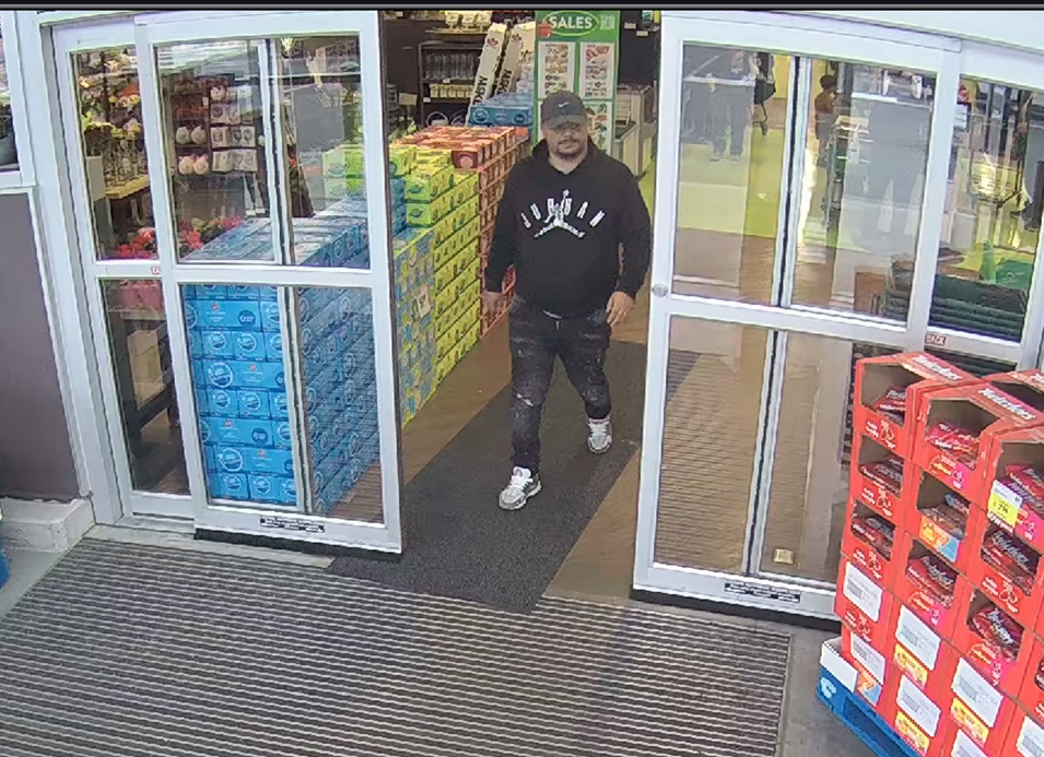 On June 14, 2024, Agassiz RCMP responded to a report of theft and fraud. The investigation identified surveillance footage showing the male suspect enter a Save-On (45000 block Luckakuck Way, Chilliwack) at approximately 9:00 AM. The same suspect is observed on surveillance committing an alleged theft of a wallet from a victim’s shopping cart.