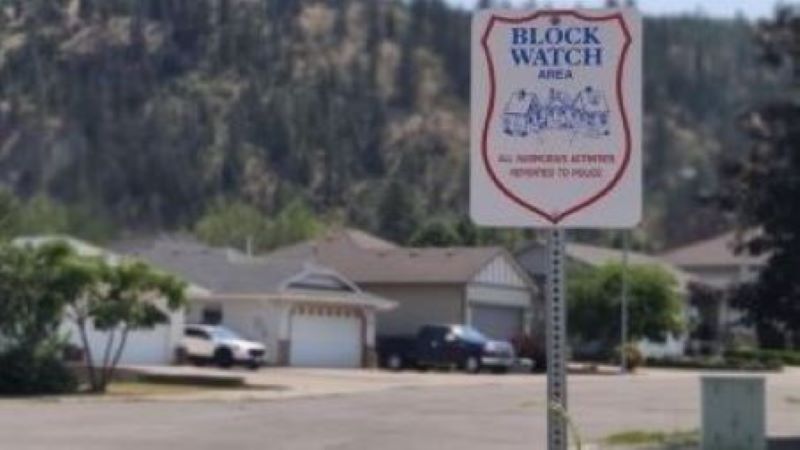 Voir une image agrandie: un écriteau « Secteur Block Watch » est placé à côté de la rue dans un quartier de Kamloops.