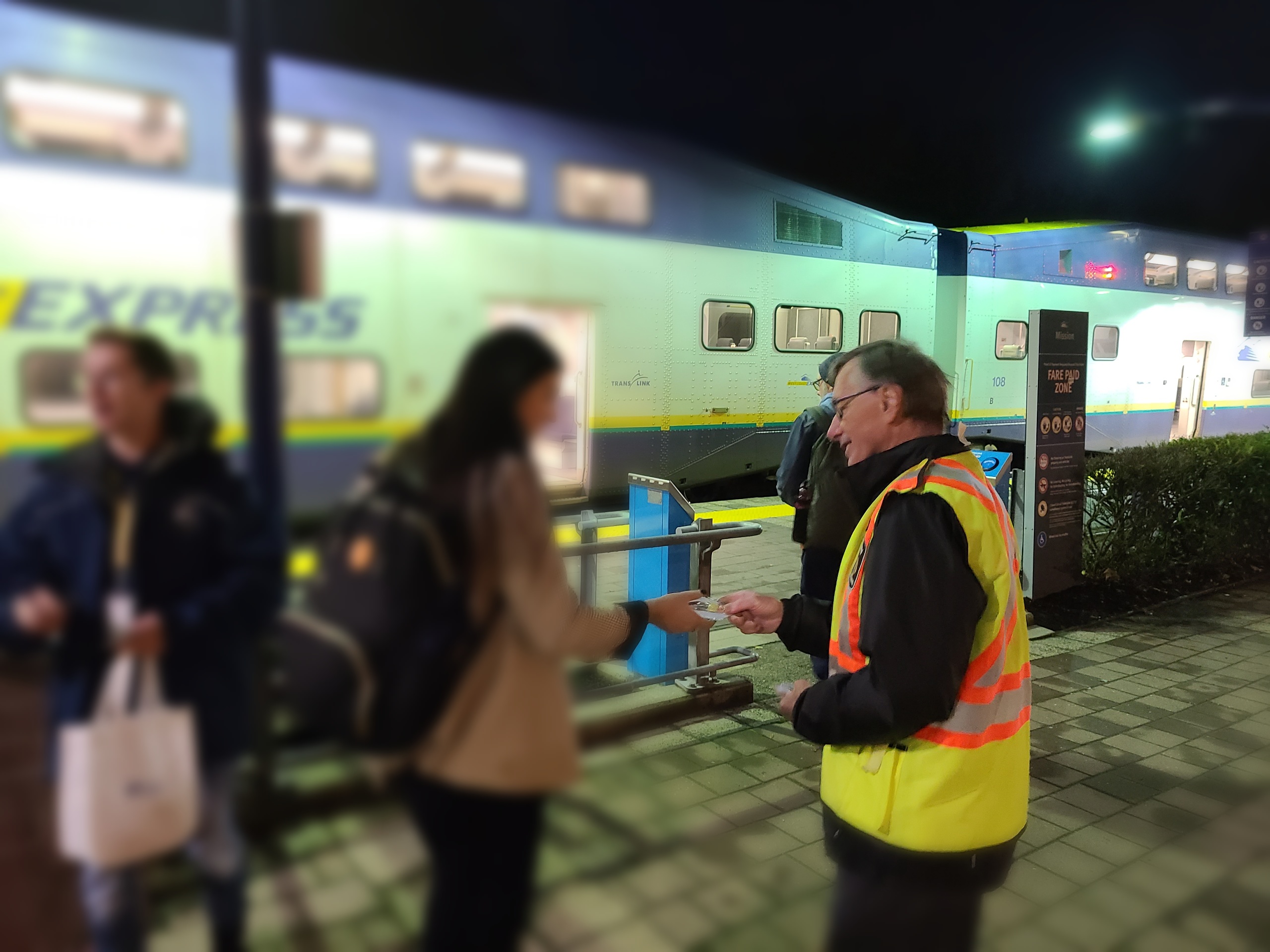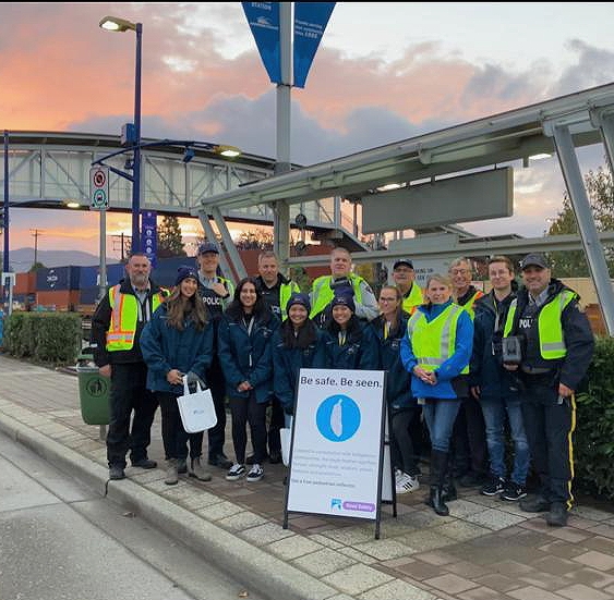 Officers and volunteers assembled outside the West Coast Express Station starting at 5 am, to coincide with the first commuter train of the morning. Volunteers met with pedestrians to remind them about the importance of being visible during the darker fall and winter months. Meanwhile, officers from Mission RCMP’s Traffic Services unit conducted speed enforcement nearby, where the stretch of North Railway Avenue near the West Coast Express station is 40 km/hr. The pedestrians received reflective safety tags to remind them of the importance of being seen, whereas drivers who were going too fast also received reminders, however those were not reflective.