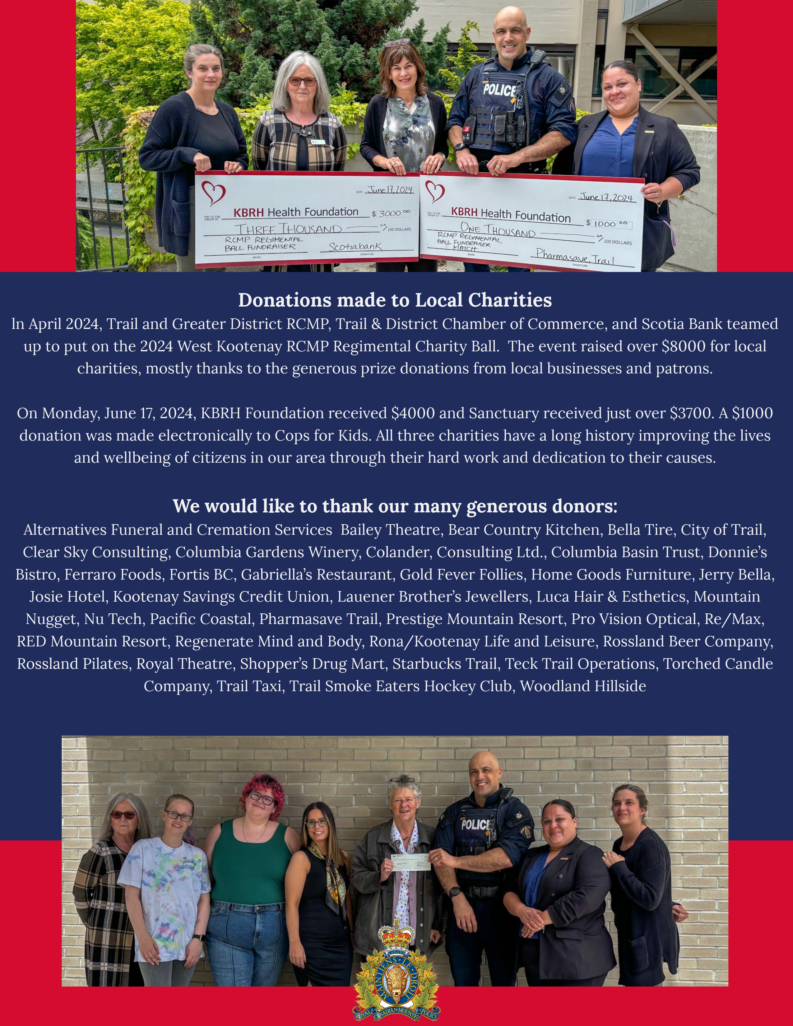 On Saturday, June 29, 2024, at 10:08 p.m. frontline Trail and Greater District RCMP officers received a report about two people jumping off the Victoria Street Bridge and into the Columbia River, in Trail, BC.