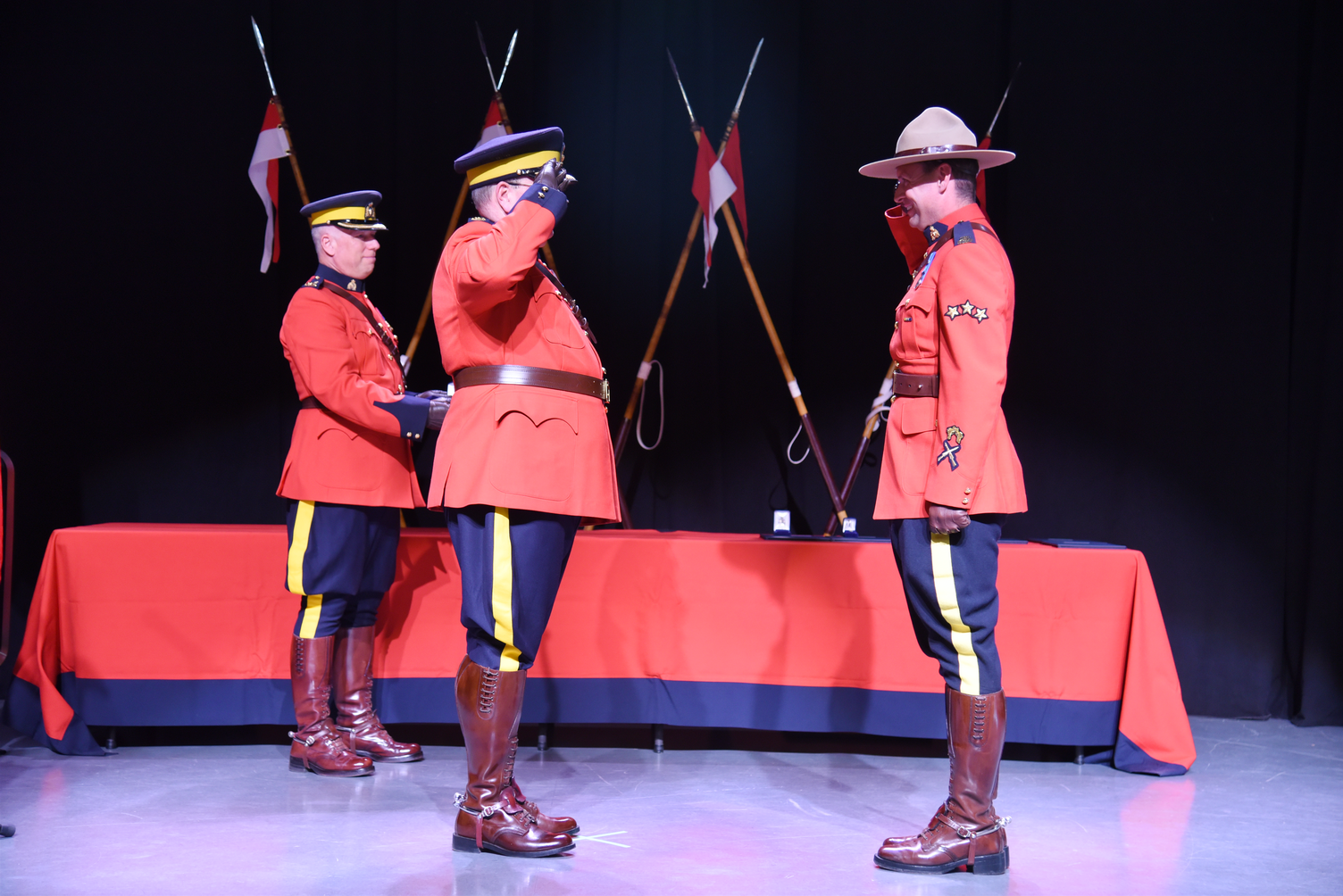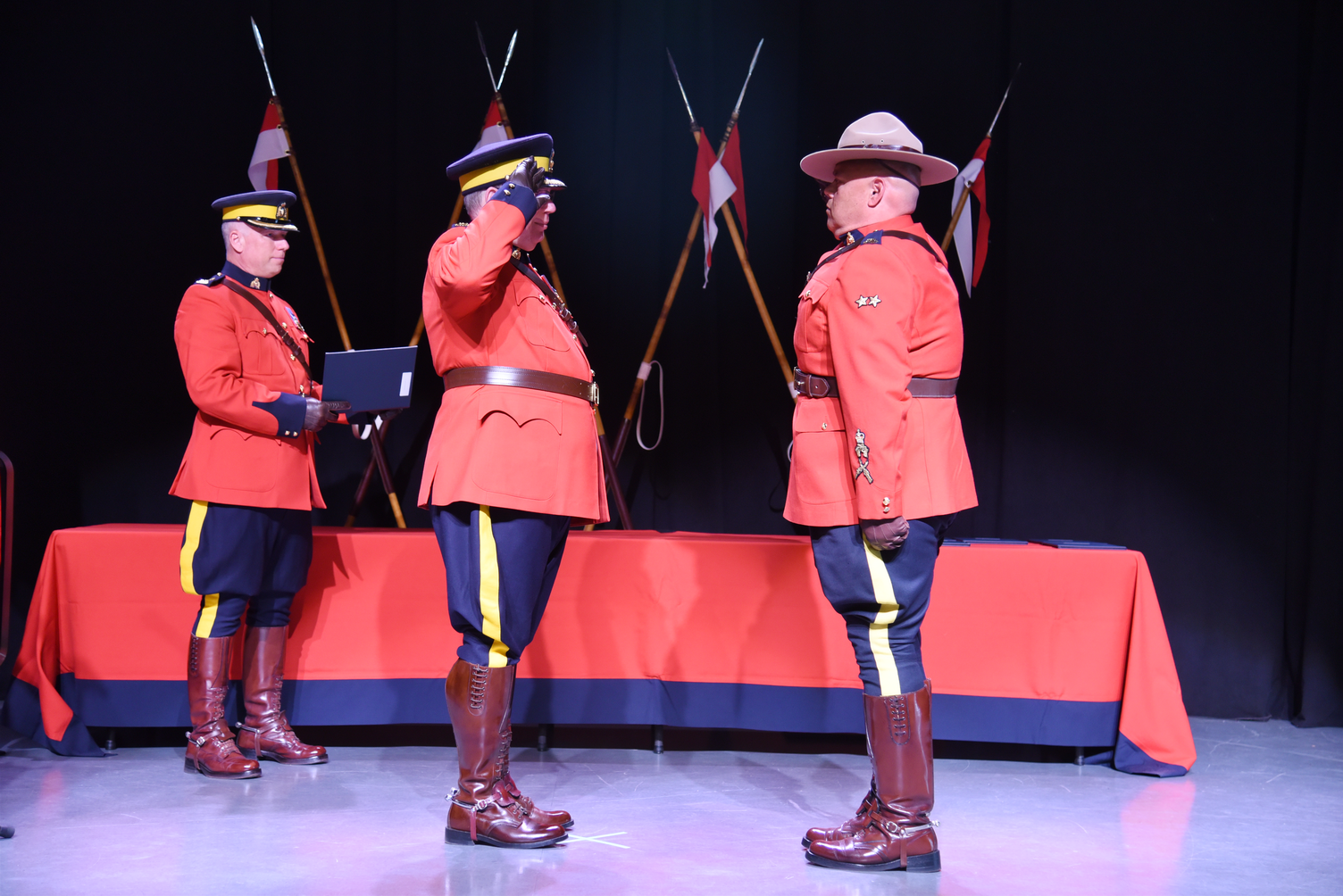 Click here for a larger photo of Sergeant Kyle Ushock saluting Chief Superintendent Brian Edmonds.