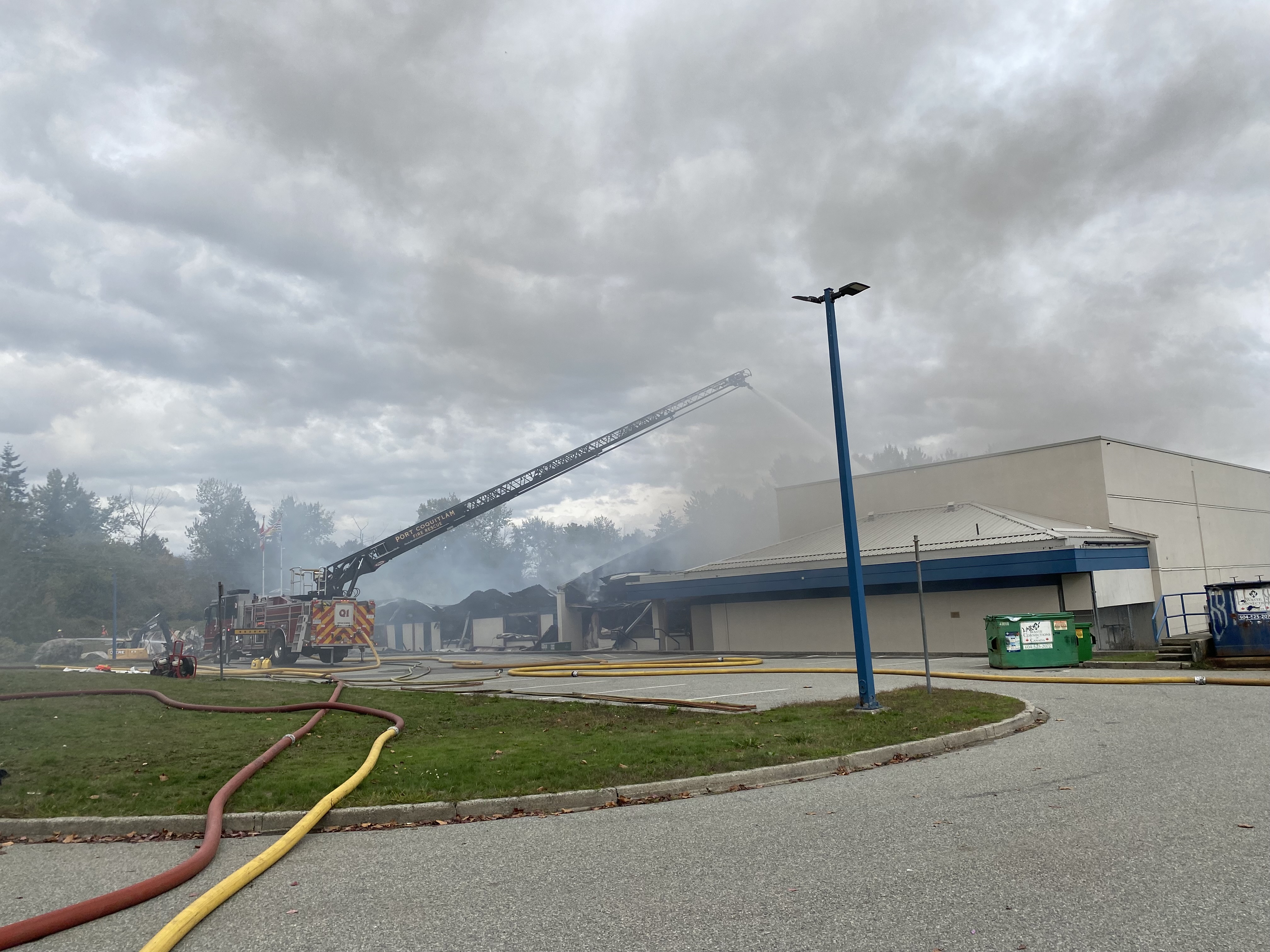 View a larger image - Port Coquitlam Fire continue to extinguish the fire at the school
