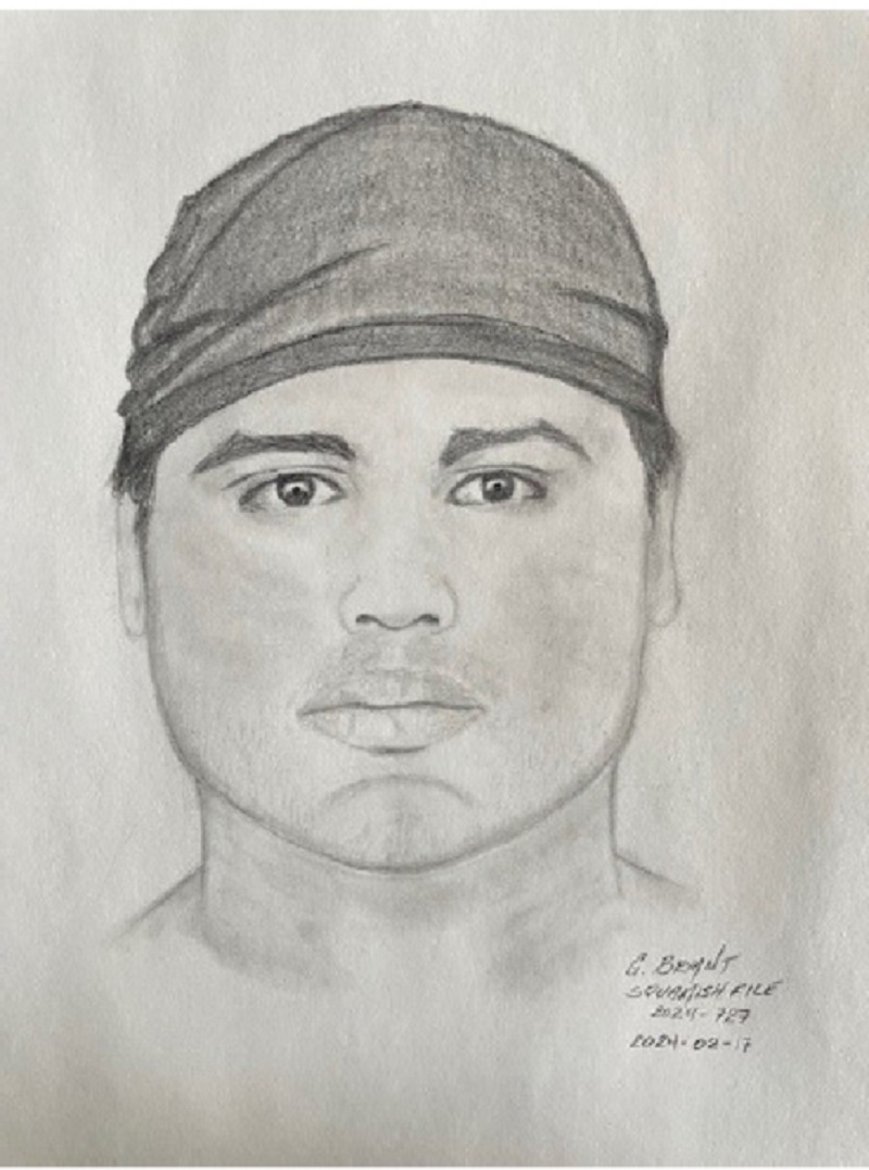 We are releasing a forensic sketch of the suspect in an attempt to identify this individual, said Constable Katrina Boehmer, Media Relations Office for Sea to Sky RCMP. If you recognize this person, please contact the Squamish RCMP’s non-emergency line at 604-892-6100.