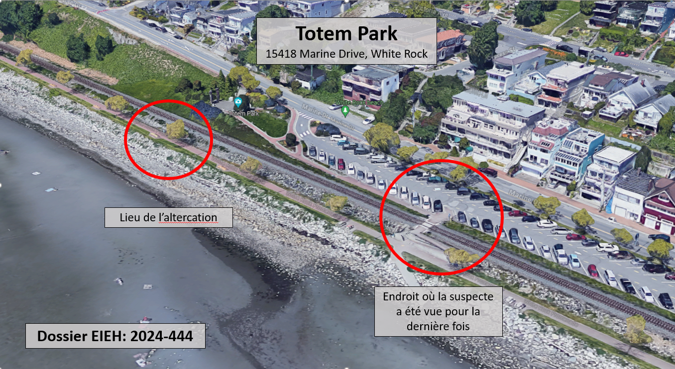 Si vous avez été témoin de l’incident, que vous possédez des renseignements sur l’homicide ou que vous vous trouviez dans le secteur de la promenade piétonnière de White Rock, à l’est du quai de White Rock, ou encore, si vous avez capté des images à l’aide d’une caméra de tableau de bord alors que vous conduisiez sur la promenade Marine le 23 avril 2024 entre 20 h et 22 h, veuillez appeler la ligne d’information de l’EIEH au 1-877-551-IHIT (4448) ou envoyer un courriel à l’adresse infoeieh@rcmp-grc.gc.ca.