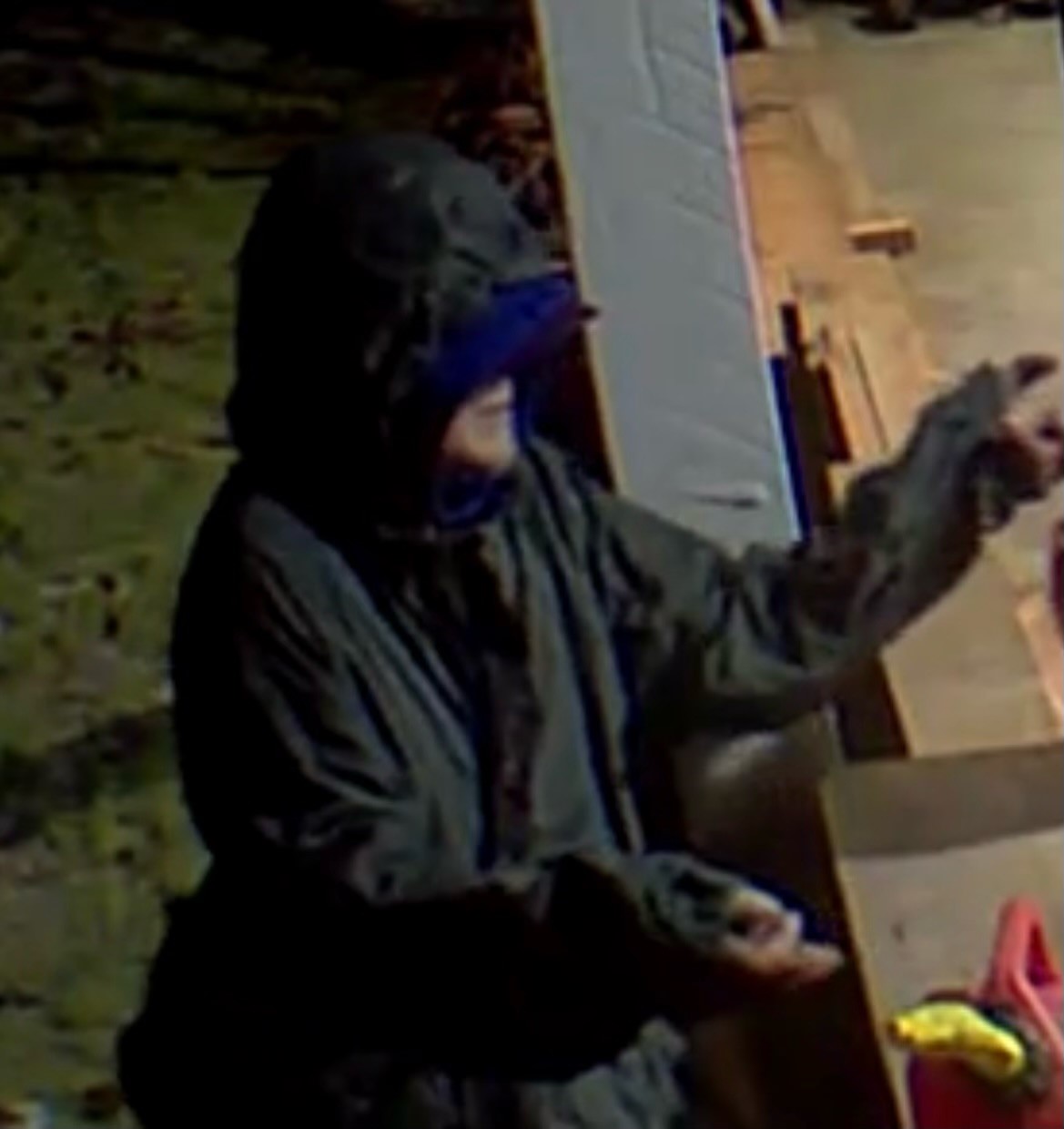 On March 2nd, Quadra RCMP received a report of a theft on a residence on Heriot Bay Road that occurred 15 minutes after midnight. The complainant provided video surveillance which captures the theft. The surveillance shows one individual who is wearing a black raincoat and a blue hoodie, both with the hood up. The individual stole a chainsaw as well as jar of bar oil before departing.