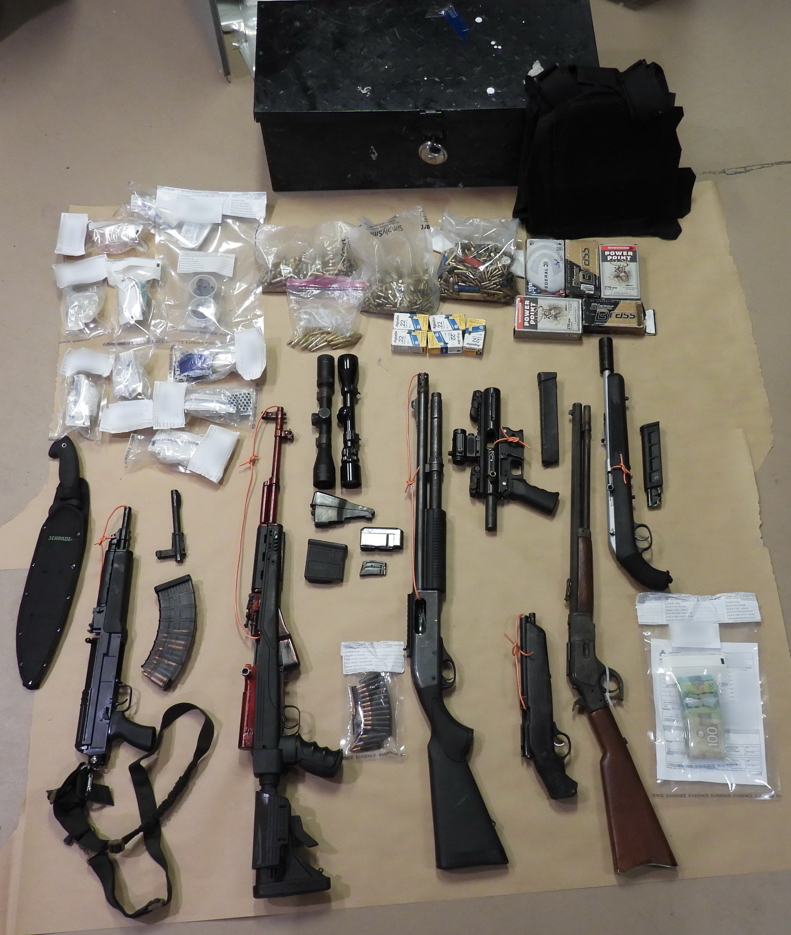 Prince George RCMP’s Problem Oriented Policing Team and Downtown Safety Unit executed two Controlled Drugs and Substances Act and Firearms search warrants on the 2600-block of Quince Street on November 29, 2024. The search warrants were executed in response to an investigation from earlier that day, where police witnessed a man set a stolen vehicle on fire.
