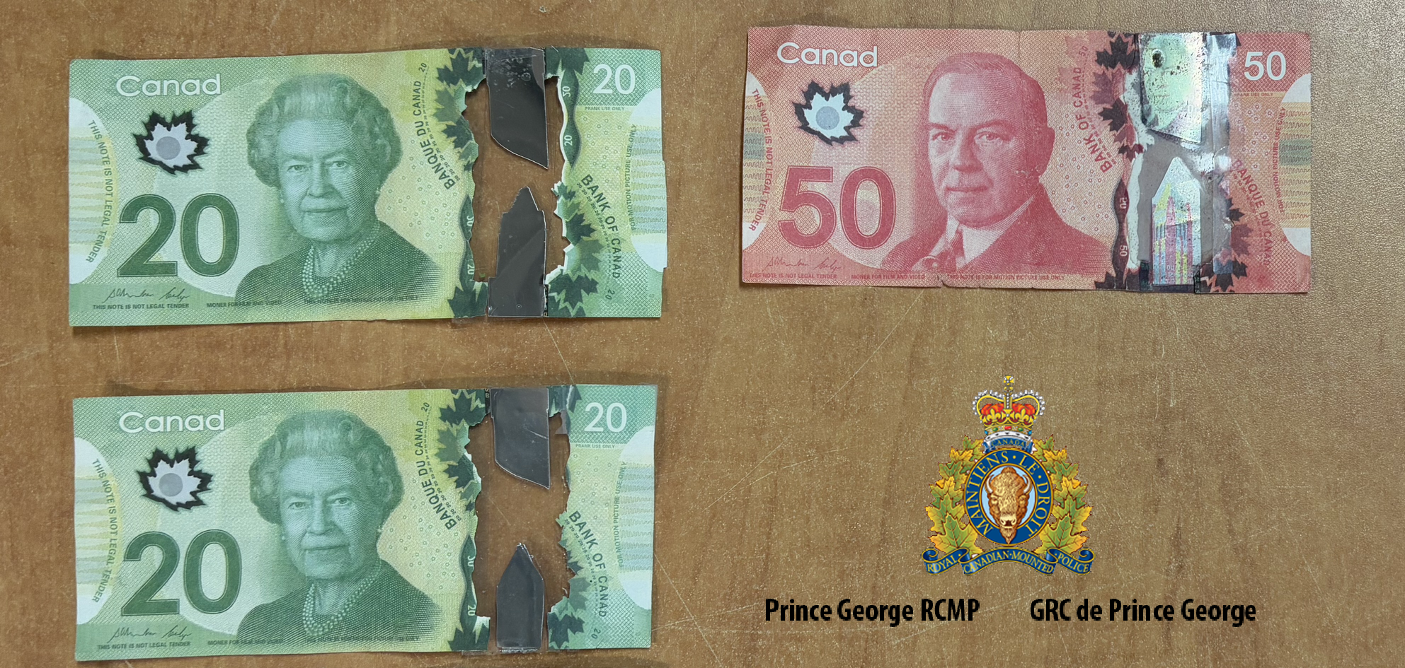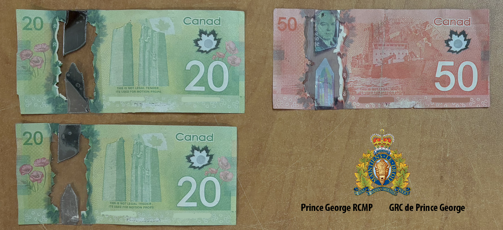 Where we would typically see one to two reports of counterfeit bills each month in Prince George, since December 1 we have received 17 reports, so that’s quite a spike in counterfeit bills going around the city. It is predominantly $20 and $50 bills we are seeing used, states Cpl. Jennifer Cooper, Media Relations Officer for Prince George RCMP.