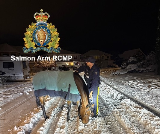 Picture: Salmon Arm RCMP member with horse found running the streets of Salmon Arm on November 16.