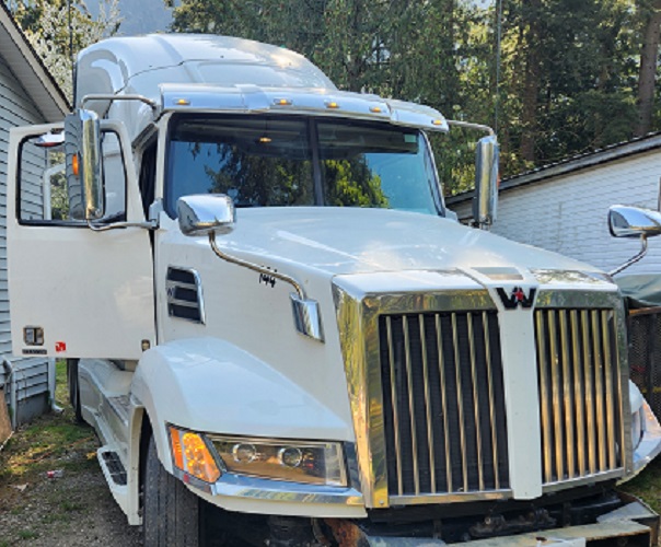 On April 25, 2025, the Hope RCMP responded to a report of suspicious activity in the 17000 Block of Silverhope Rd in Hope, BC. During the course of the investigation, officers located a significant amount of stolen property including a transport truck, two trailers confirmed to contain stolen property, stolen license plates and a large storage tank of diesel fuel.